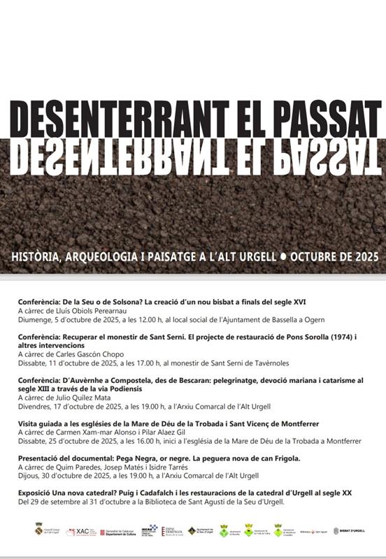 Desenterrant el passat és un cicle d’activitats que combina xerrades, visites guiades i presentacions íntimament vinculades amb el coneixement de la història i el patrimoni cultural de l’Alt Urgell. Està organitzat pel Consell Comarcal de l’Alt Urgell, l’Arxiu Comarcal de l’Alt Urgell, l’Institut d’Estudis Comarcals de l’Alt Urgell, l’Espai Ermengol-Museu de la Ciutat i els ajuntaments implicats. Així mateix, enguany compta amb la col·laboració de la Biblioteca Sant Agustí de la Seu d’Urgell. En l’edició d’enguany, el cicle comptarà amb les accions següents: