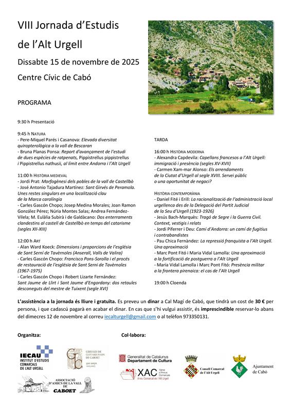 del dimecres 12 de novembre al correu iecalturgell@gmail.com o al telèfon 973350131.